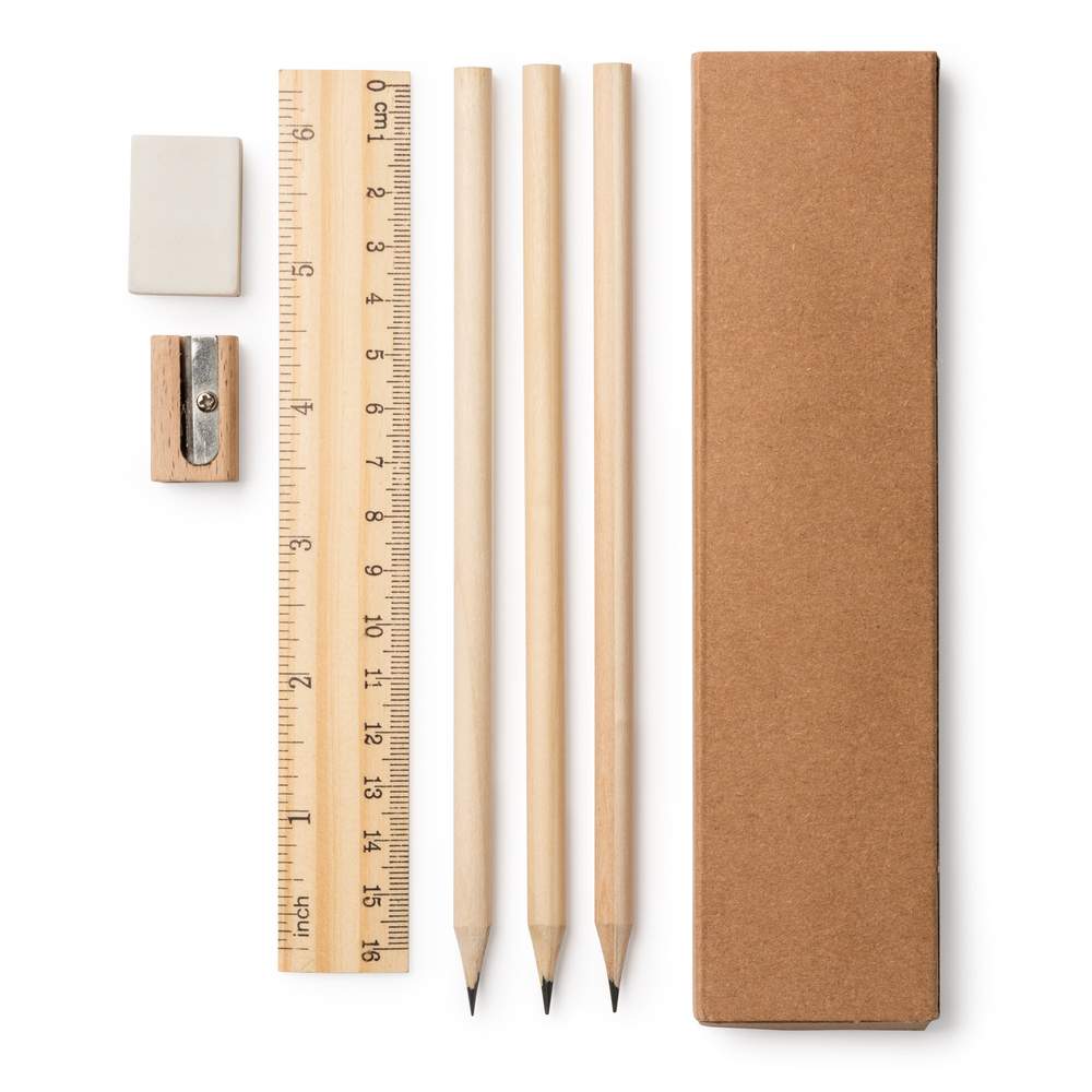 - Contenuto: Righello, 3 matite, gomma, temperamatite