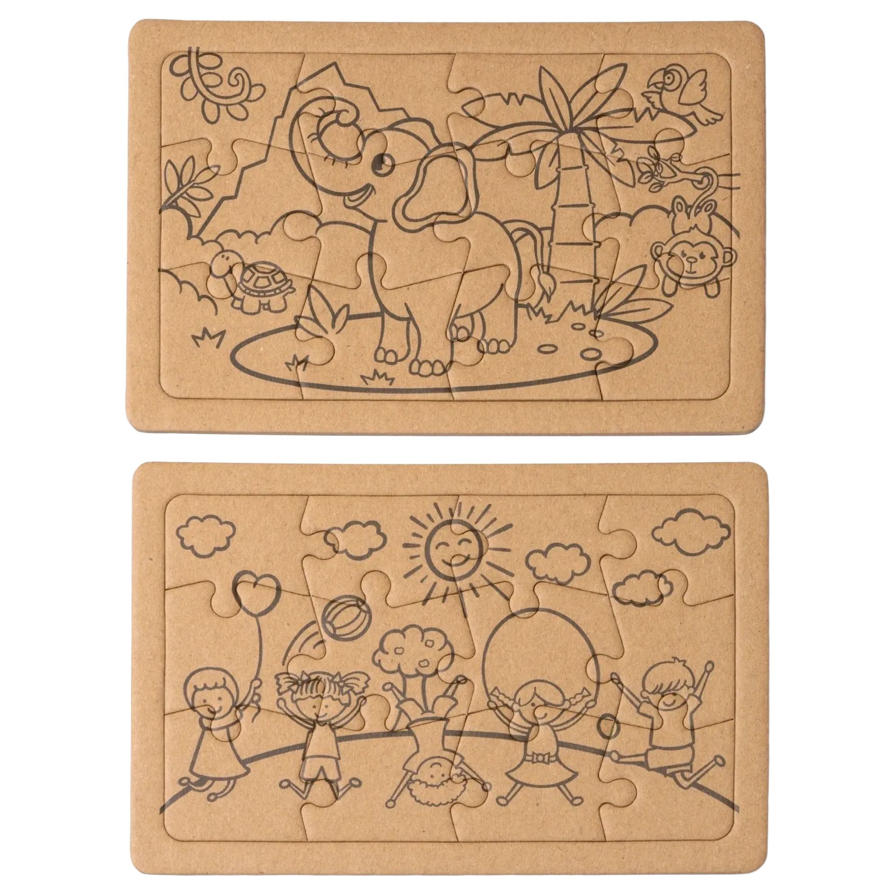 Il ZEON puzzle cartone riciclato comprende due puzzle da 12 pezzi ciascuno. Questo gioco favorisce la creativit\u00e0 in un formato compatto adatto ai bambini.