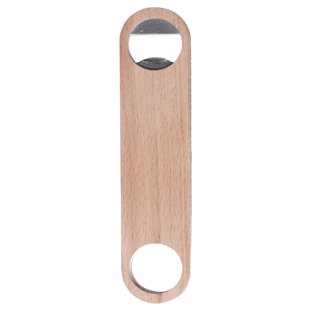 Decapsuleur allungato della linea naturale, con un foro a ogni estremità: uno con funzione di decapsuleur e l'altro come un gancio. Fabbricato in legno naturale con interno in acciaio inossidabile. Dimensioni: 17,9 x 4 cm. Questo accessorio combina funzionalità ed estetica naturale per un utilizzo pratico quotidiano.