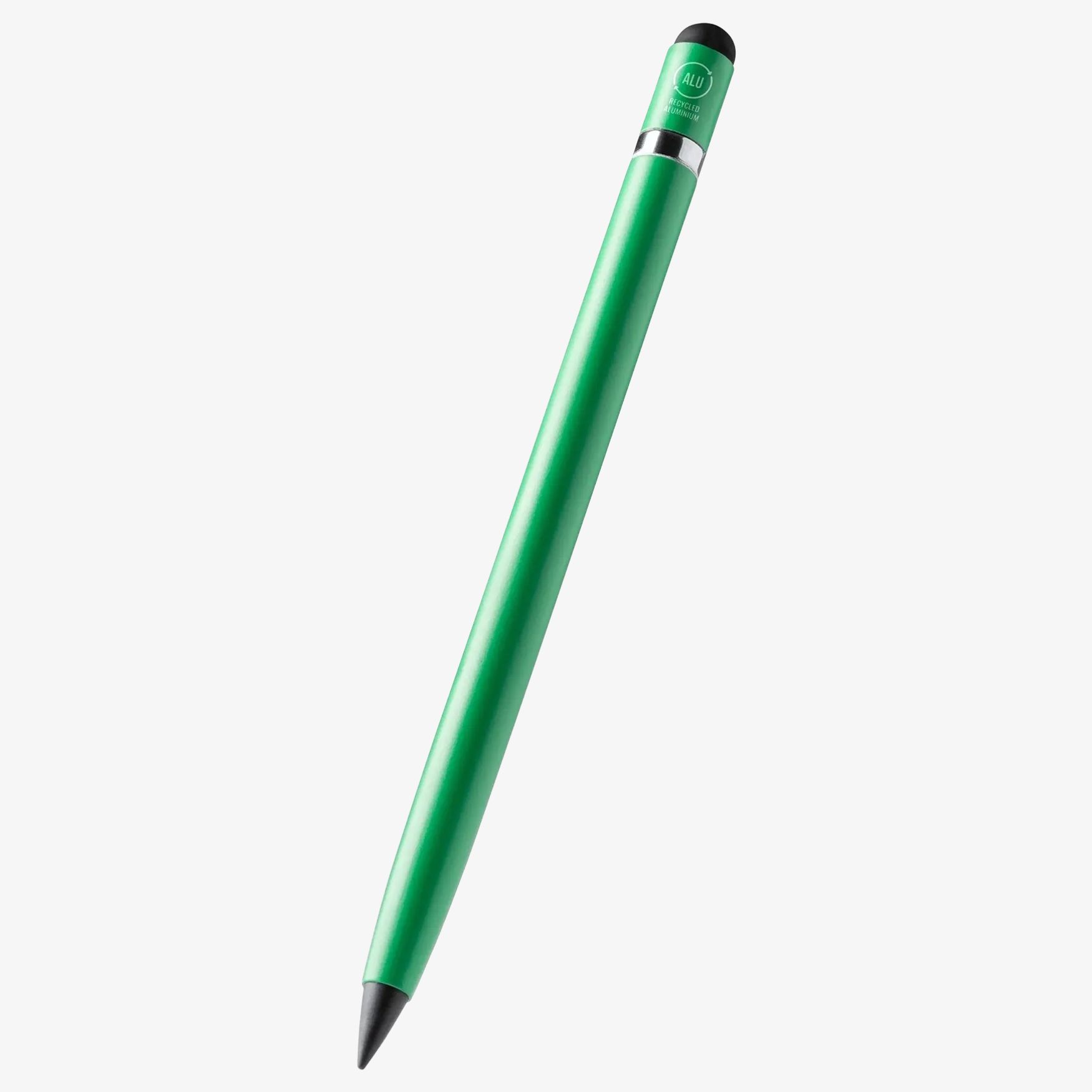 La matita con corpo in alluminio riciclato integra una punta di grafite intercambiabile per una scrittura precisa e una gomma all'estremit\u00e0 per correggere gli errori rapidamente. La fabbricazione utilizza materiali durevoli per limitare l'impatto ambientale.