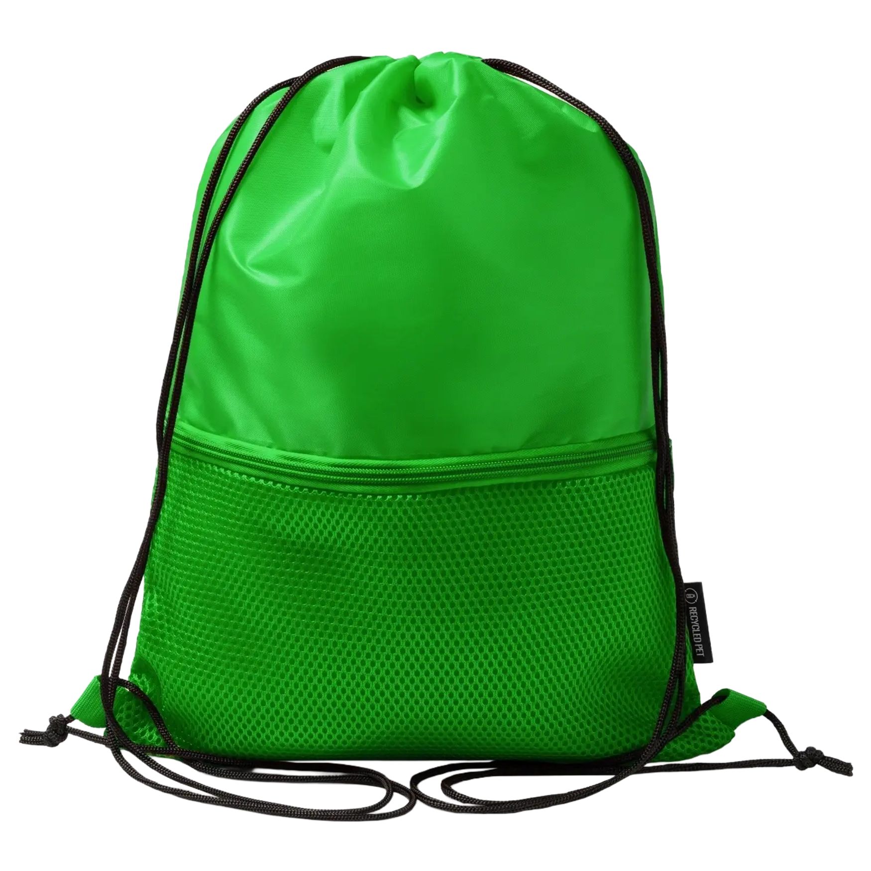 La sac gym MILAK è realizzato in RPET 210 D con una tasca esterna in tessuto imbottito e chiusura lampo per una chiusura sicura.