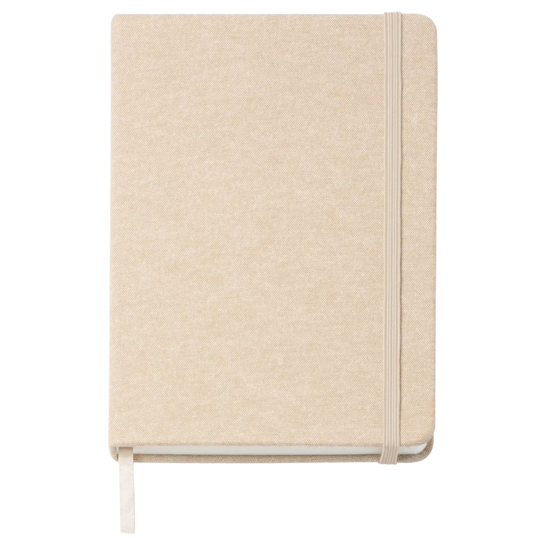 Il blocco per appunti SORAL presenta una copertina in cotone con un segnalibro elastico a fascia. Include 100 fogli bianchi per un uso vario.