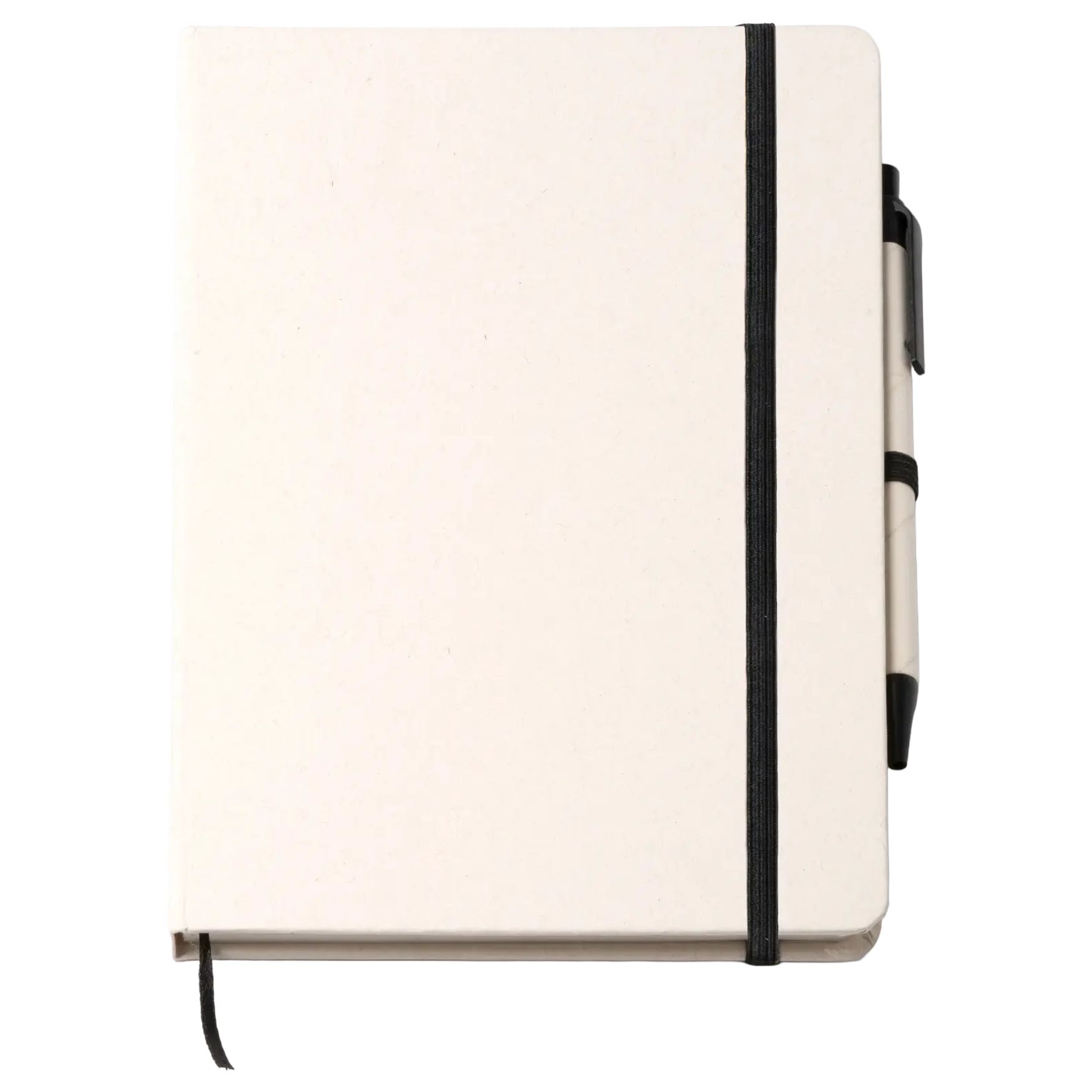 Il bloc notes AUGER è realizzato con cartoni riciclati da latte. Comprende una copertina rigida con banda elastica segnalibro e una penna a sfera con inchiostro blu. Questo blocco contiene 100 fogli semplici.