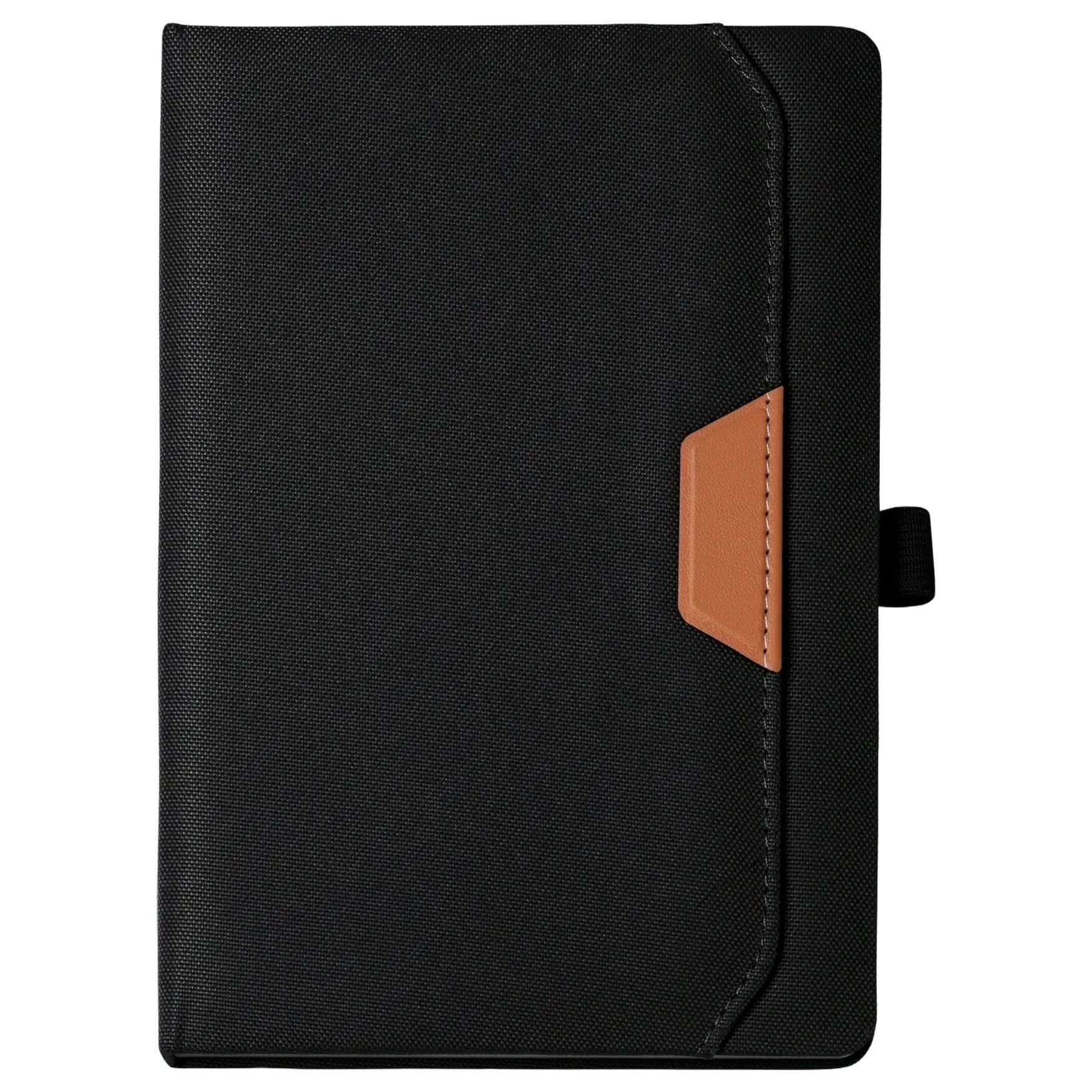 Il blocco note BELA presenta una copertina rigida 600 D RPET PU con tasca esterna e porta penne. Contiene 80 fogli a righe per varie annotazioni o scritti. Le dimensioni compatte ne facilitano il trasporto e l'uso in ambito professionale o personale.