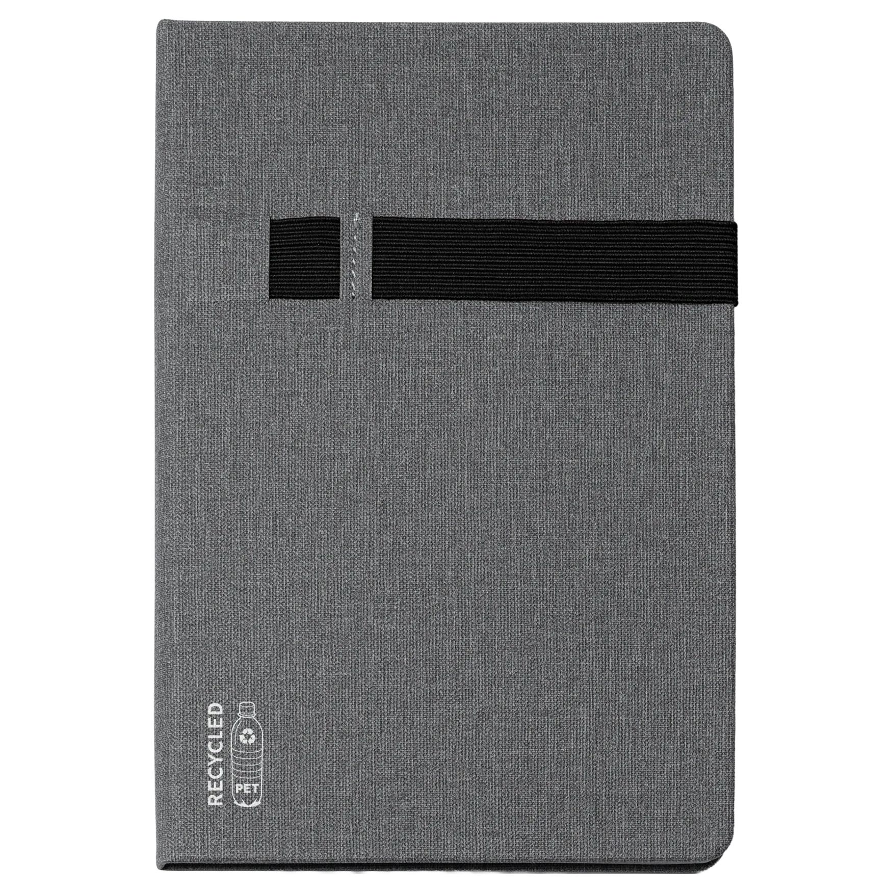 Il carnet SIKAS ha una copertina rigida in RPET e include una penna con supporto per telefono cellulare. Contiene 80 fogli uniti adatti a vari utilizzi.