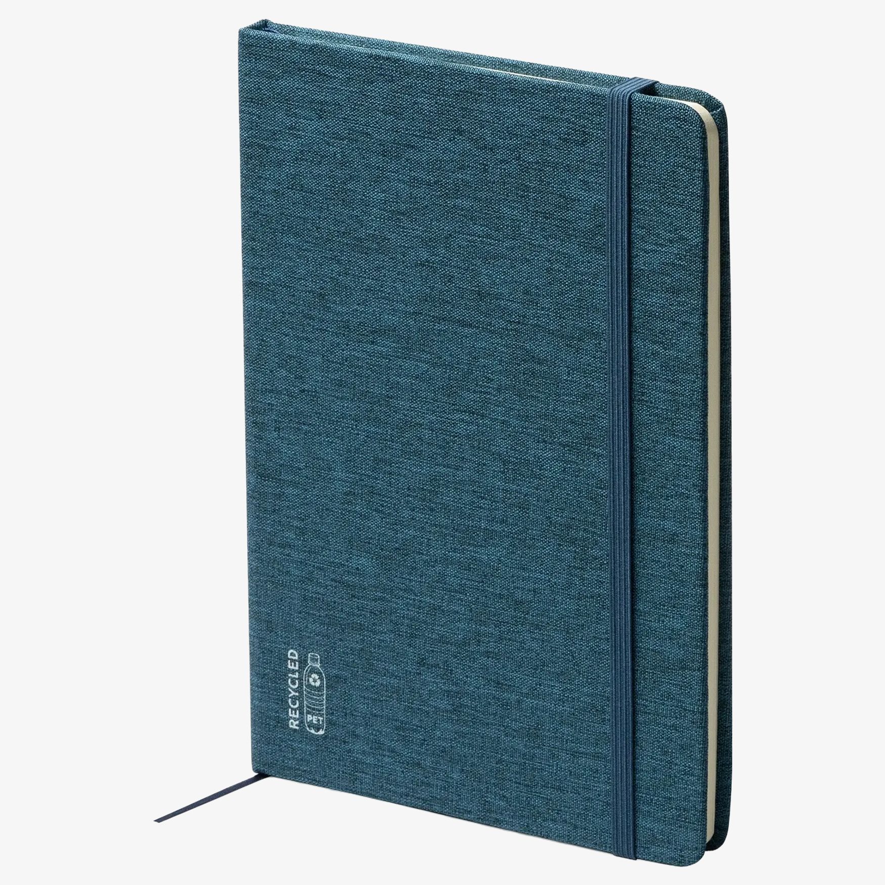 Il notebook SOYER comprende una copertina rigida in RPET e una fascia elastica che funge da segnalibro. Contiene 80 fogli per usi diversi. Le dimensioni sono 14,7 x 21 x 1,5 cm.