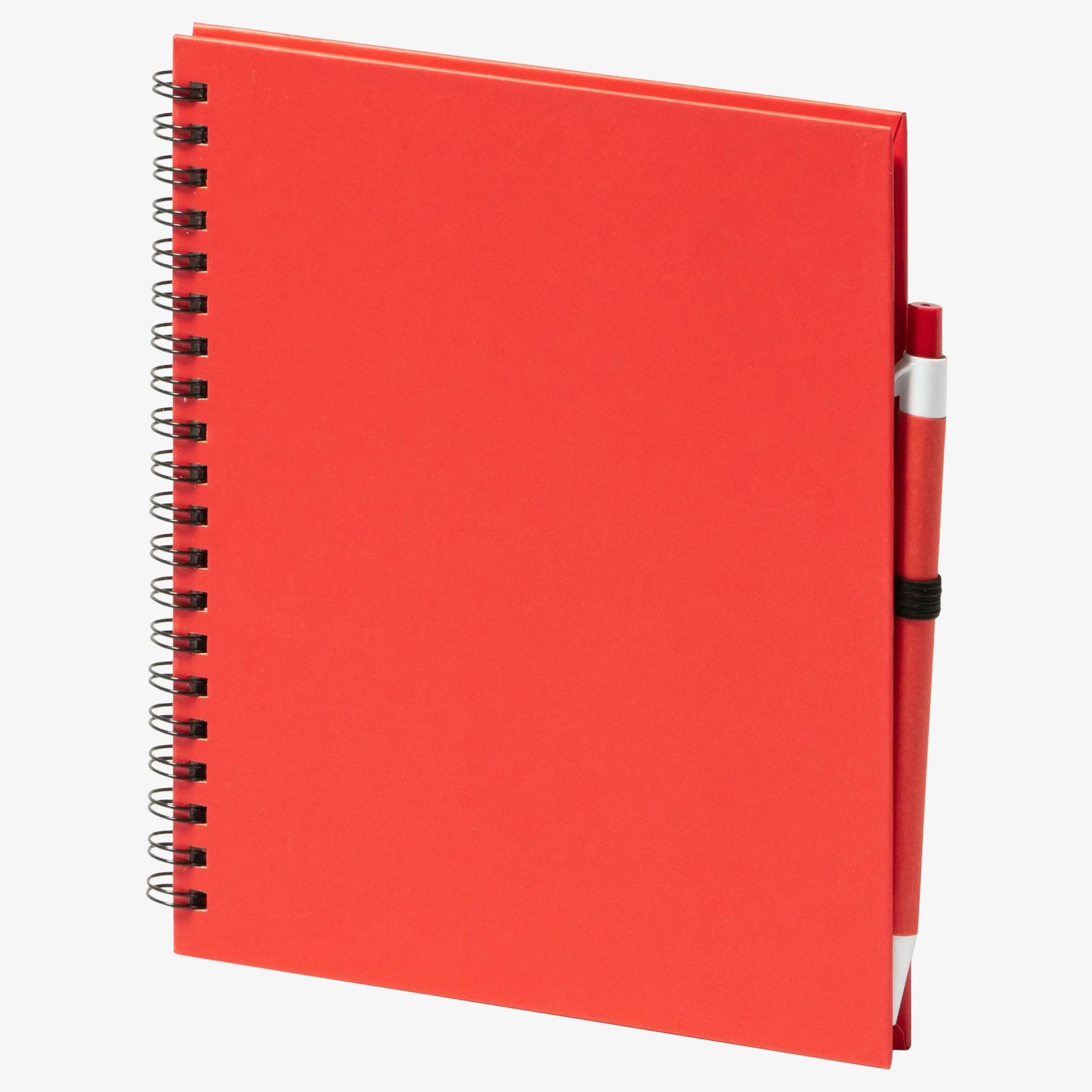 Il notebook a spirale contiene 70 fogli semplici e uno spazio per penna. La copertina rigida è in cartone riciclato abbinato. Le dimensioni sono 15 x 1,9 x 18,2 cm.