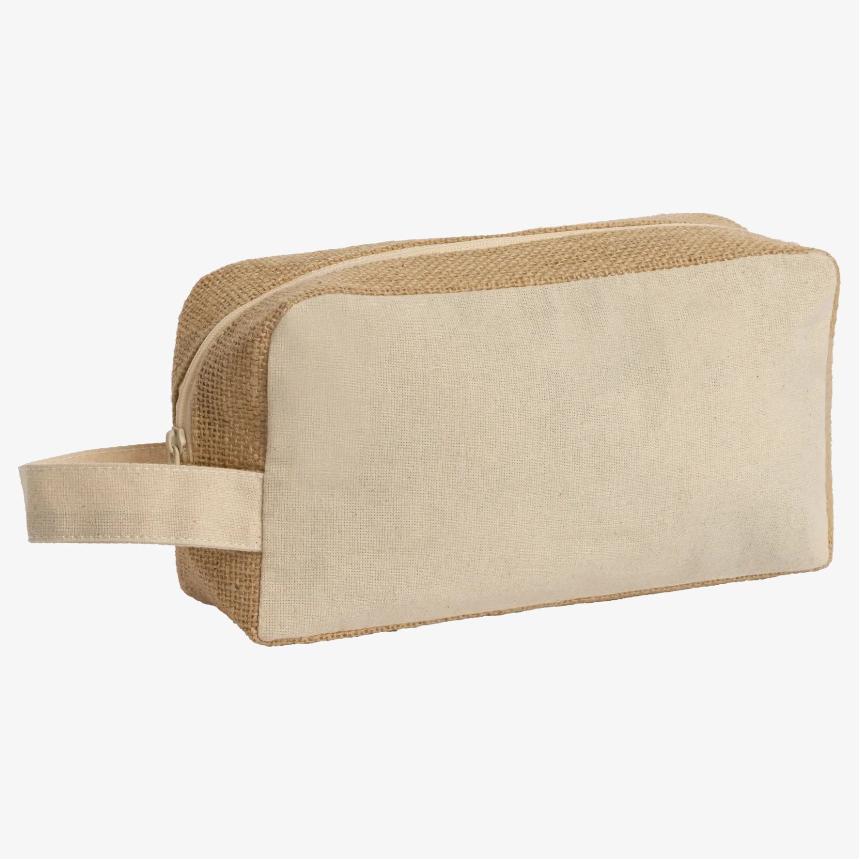 L'astuccio Siena in cotone laminato e iuta è adatto per riporre accessori da toilette o piccoli oggetti. La chiusura a zip con tiralampo in iuta facilita l'apertura e la chiusura. Dimensioni: 21 x 11 x 6 cm.