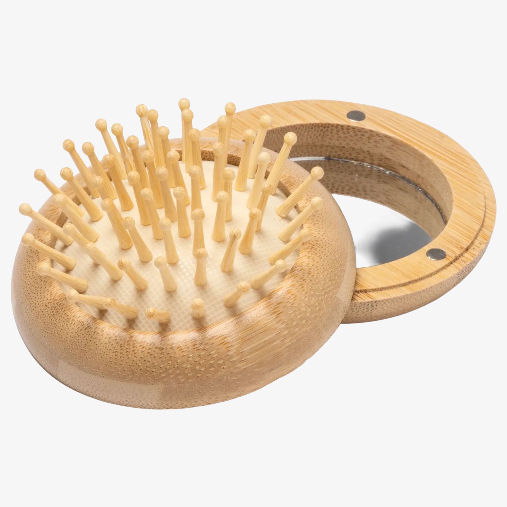 La spazzola pieghevole in bambù Seldon con specchio 2,7 x 8,2 cm si ripone facilmente e consente una pettinatura occasionale in movimento, con specchio integrato sul retro.