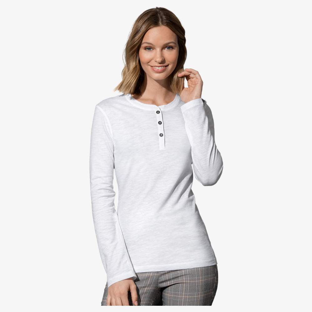 ST9580 - Maglietta cotone ring spun Sharon henley maniche lunghe personalizzazione st9580 - white