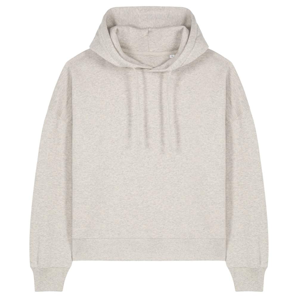 La felpa per donne offre un comfort ottimale con le sue maniche montate e le spalle cadenti. Le coste 1x1 al collo, ai polsi delle maniche e all'orlo inferiore garantiscono un'adattamento confortevole. Le cuciture doppie su tutte le cuciture garantiscono una maggiore durata. Una striscia di grosgrain all'interno del collo aggiunge un tocco di raffinatezza, mentre la mezza luna in tessuto della stessa materia sulla parte posteriore del collo offre un comfort aggiuntivo. Questa felpa è composta al 100% di cotone organico filato a anello, eccetto per il colore Heather Haze che contiene 80% di cotone organico e 20% di cotone riciclato, filato a anello. Questo modello è ideale per la personalizzazione in ricamo, permettendo di aggiungere il proprio logo o il proprio visuale per una comunicazione efficace.
