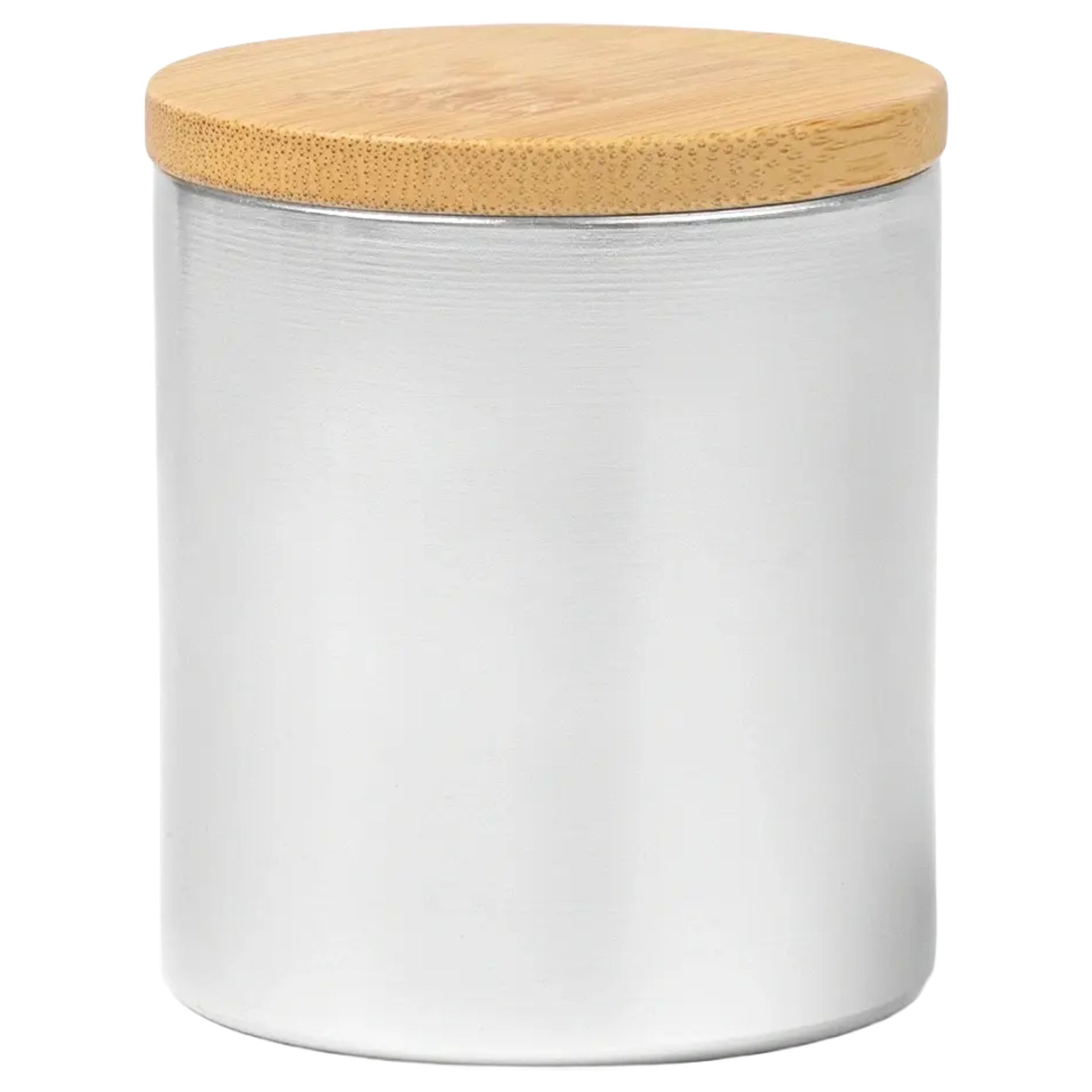 La candela profumata alla vaniglia Maris in contenitore di alluminio con coperchio in bambù è adatta a profumare una stanza e creare un