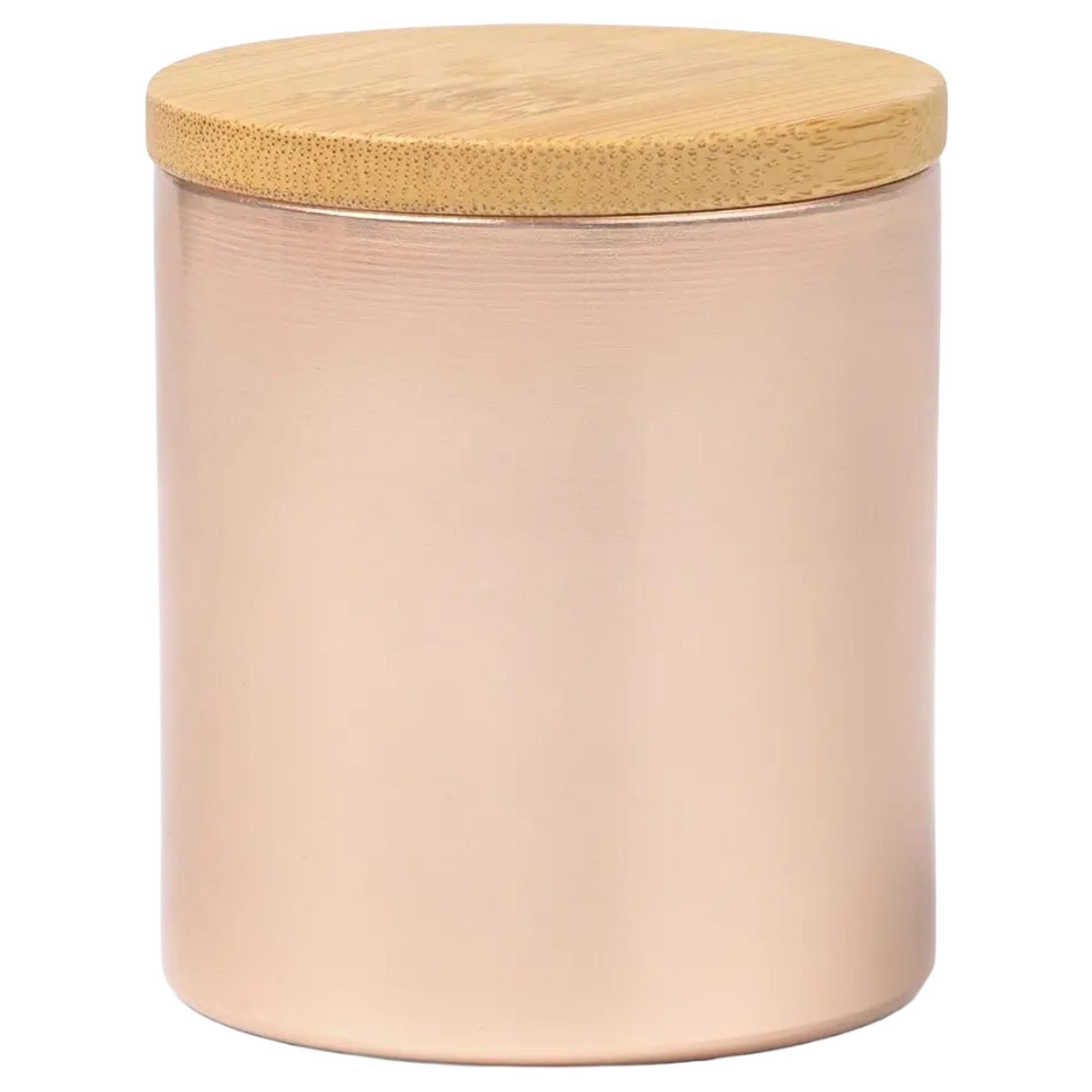 La candela profumata alla vaniglia Maris in contenitore di alluminio con coperchio in bambù è adatta a profumare una stanza e creare un