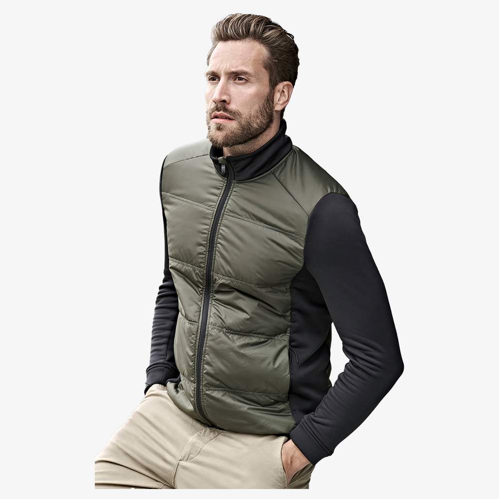 Giubbotto bi-materiale che combina pannelli in poliestere e poliestere tessuto, offrendo comfort e libertà di movimento. Include isolamento DuPont™ sul corpo per un calore ottimale. La silhouette moderna e il mantenimento confortevole sono garantiti dalla vestibilità stretta e dai pannelli laterali in poliestere. Dotato di una grande cerniera SBS, tasche frontali nascoste e una tasca interna, questo giubbotto è ideale per varie attività. È personalizzabile in ricamo per aggiungere il proprio logo o visivo, permettendo un'identificazione forte del proprio marchio o azienda.
