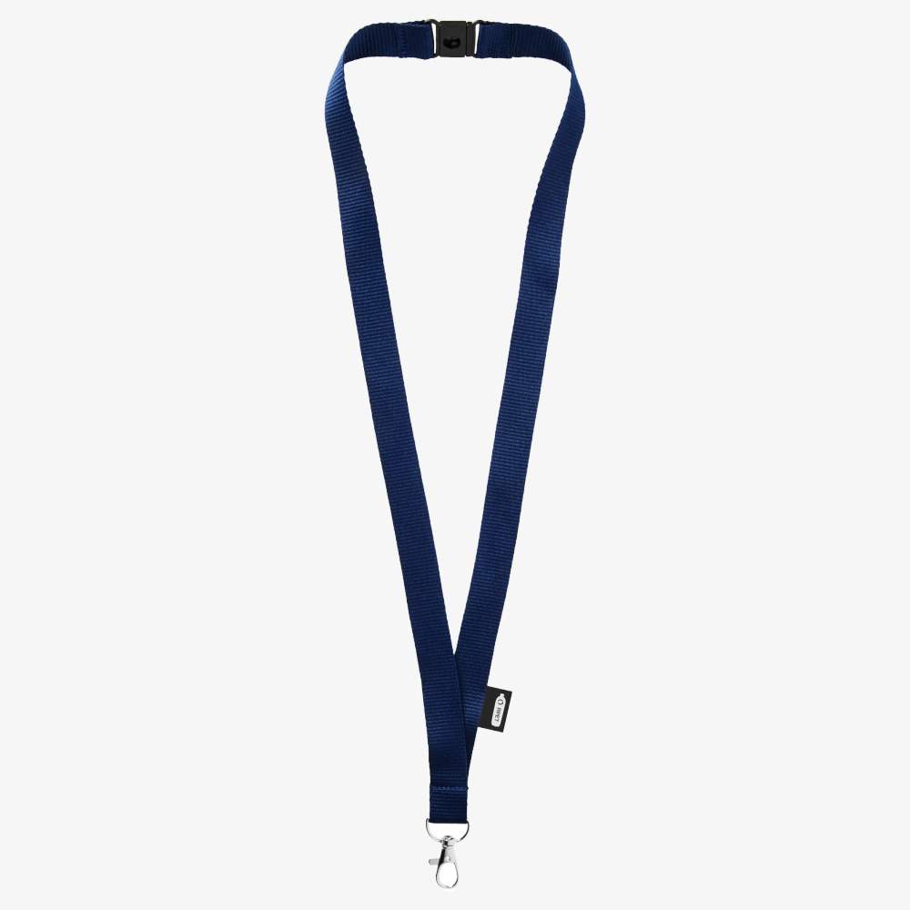 Tour de cou in PET riciclato con fermaglio di sicurezza. Gancio ovale di alta qualità con moschettone, ideale per portare un badge nominativo, una carta d'identità o delle chiavi. Dimensioni: 2 x 45 x 0,20 cm. Composizione: plastica riciclata.