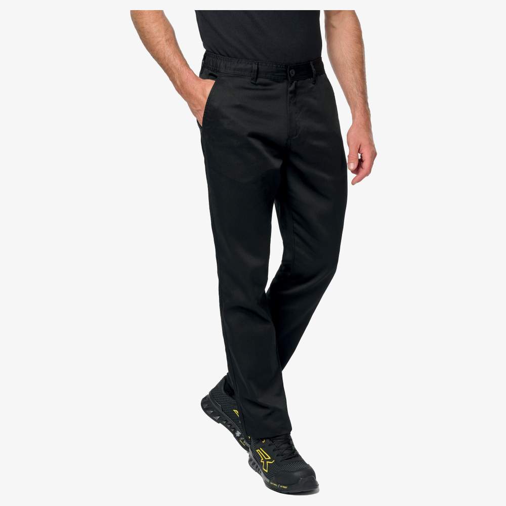 Pantalone Day to Day per uomo progettato per un comfort e una durabilità ottimali. Questo pantalone è dotato di 2 tasche laterali italiane, delle quali una è una tasca portamonete, e di 2 tasche posteriori a passamaneria con cuciture rinforzate. Chiusura lampo e bottone. Cinturino elastico con passanti per un adattamento personalizzato. Gancio di aggancio all'interno della parte posteriore della vita. Composizione: 65% poliestere, 35% cotone.