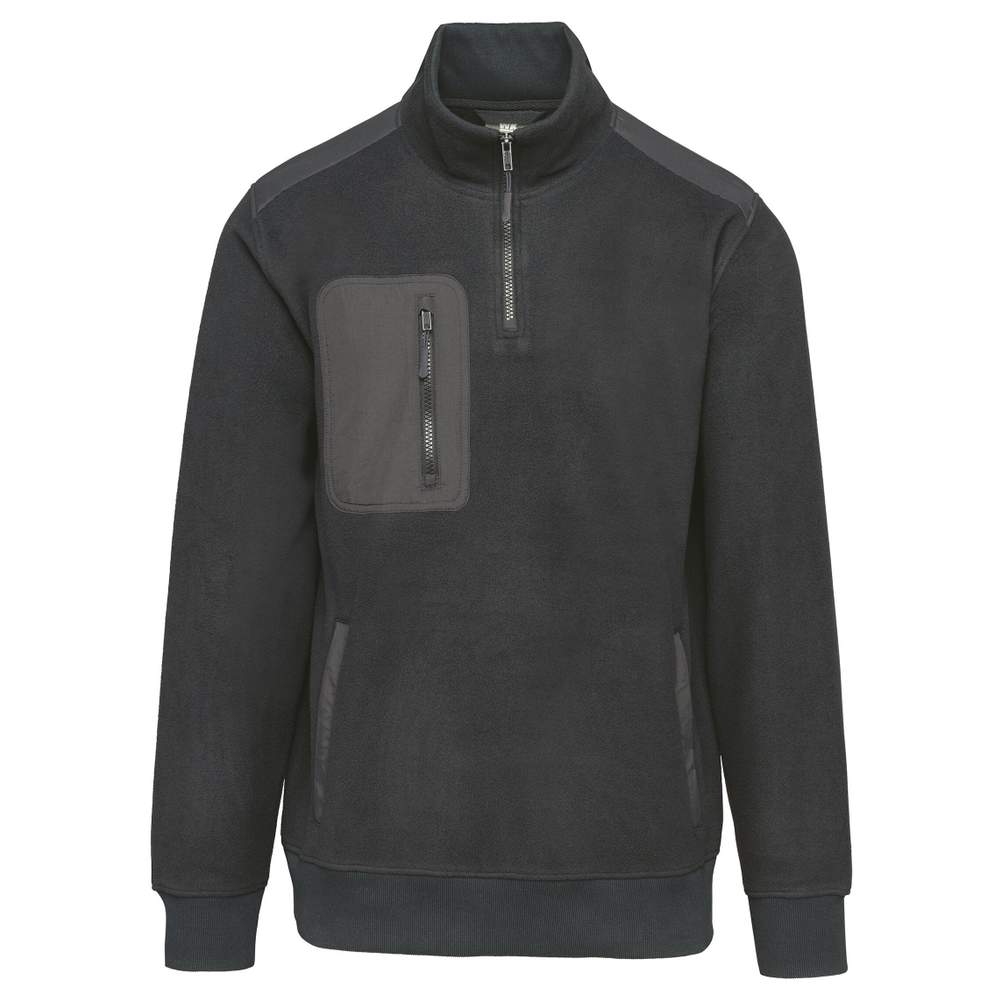 Vestito in pile ecoresponsabile con cappa e zip unisex. Taglia dritta per un comfort ottimale. Questo vestito è dotato di due tasche con zip passepoilate in taslan davanti, nonché una tasca sul petto arrotondata con zip sul lato destro. La cappa è rivestita con una costa 2 x 2 e una zip in plastica riciclata con un cordino di aggancio interno. Ci sono rinforzi in taslan sulle spalle e sugli avambracci. Le maniche e il fondo del vestito sono dotati di bordi a costine tubolari in rib 2 x 2. Questo modello comprende un'etichetta rimovibile del marchio.