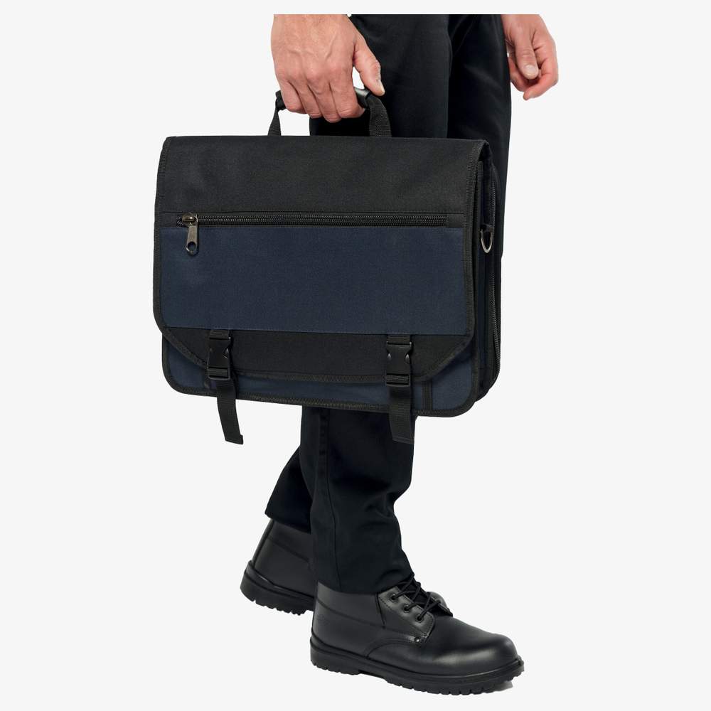 Borsa progettata per il trasporto di attrezzi e computer portatili. Offre una soluzione di trasporto pratica e organizzata per professionisti e studenti. La borsa è dotata di una tracolla regolabile per un trasporto confortevole e di un compartimento principale spazioso capace di ospitare un computer portatile fino a 15 pollici e documenti di formato A4. Un compartimento dedicato agli attrezzi consente un ripostiglio organizzato e un accesso facile. Il pannello anteriore offre una superficie per una possibile personalizzazione. La sua composizione in poliestere le conferisce una buona resistenza all'uso quotidiano.