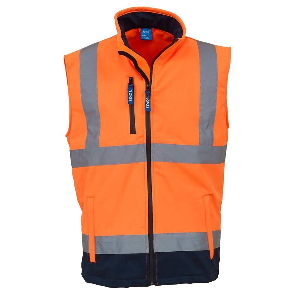 Questo gilet imbottito softshell ad alta visibilità offre protezione contro le intemperie grazie alla sua costruzione impermeabile. È costituito da tre strati: uno strato esterno in 100% poliestere, una membrana interna in TPU impermeabile e una fodera interna in microfelpa per un comfort maggiore. Presenta cerniere 100% impermeabili e tiranti con logo sul davanti e sulla tasca del petto. È dotato di due tasche con cerniera riscalda-mani e di una schiena più lunga per una migliore copertura. Bande riflettenti da 5 cm di larghezza sono presenti intorno al corpo e su ogni spalla per una visibilità maggiore. Questo abbigliamento è conforme alla norma EN ISO20471:2013 categoria 2 per i colori Giallo Hi-Vis, Giallo Hi-Vis/Marin, Arancione Hi-Vis e Arancione Hi-Vis/Marin.