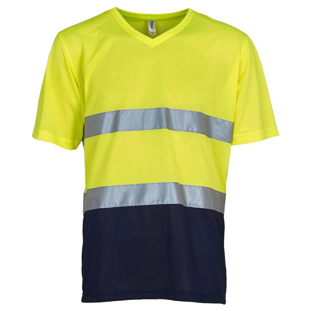 T-shirt collo v alta visibilità progettato per offrire una visibilità accresciuta in condizioni di scarsa luminosità. Realizzato in poliestere, questo t-shirt offre un comfort ottimale e una respirabilità accresciuta grazie alla sua maglia reticolo ultra leggera. Il collo V e i bordi delle maniche in costina tono su tono garantiscono una vestibilità confortevole. Questo abbigliamento è ideale per ambienti di lavoro che richiedono alta visibilità. Possibilità di personalizzazione per mostrare il vostro logo o visivo.