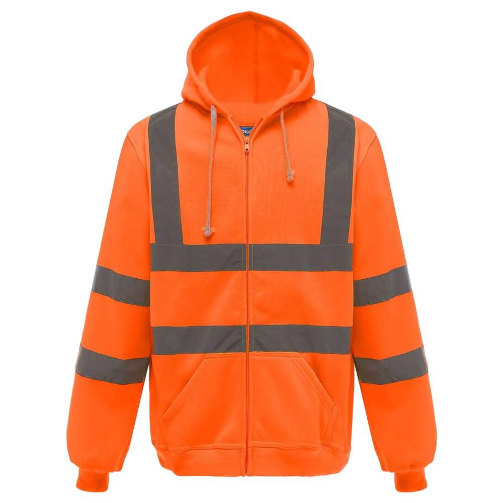 Questa felpa con cerniera e cappuccio ad alta visibilità offre una buona visibilità in condizioni di scarsa illuminazione. È progettata per offrire comfort e sicurezza. Ha due strisce riflettenti di 5 cm di larghezza intorno al corpo, alle braccia e su ogni spalla. Il cappuccio è fisso e dotato di cordone regolabile. Una cerniera frontale su tutta la lunghezza permette una facile vestizione e svestizione. I polsi e la vita sono in costina per un adattamento confortevole. Le cuciture sono realizzate con un doppio ago per una maggiore durabilità.