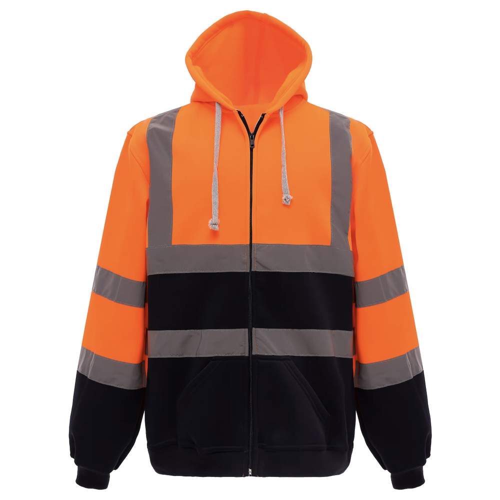 Questa felpa con cerniera e cappuccio ad alta visibilità offre una buona visibilità in condizioni di scarsa illuminazione. È progettata per offrire comfort e sicurezza. Ha due strisce riflettenti di 5 cm di larghezza intorno al corpo, alle braccia e su ogni spalla. Il cappuccio è fisso e dotato di cordone regolabile. Una cerniera frontale su tutta la lunghezza permette una facile vestizione e svestizione. I polsi e la vita sono in costina per un adattamento confortevole. Le cuciture sono realizzate con un doppio ago per una maggiore durabilità.