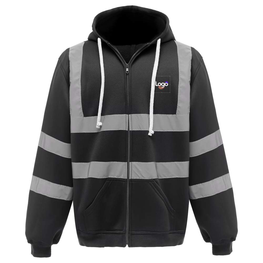 Questa felpa con cerniera e cappuccio ad alta visibilità offre un'ottima visibilità grazie alle sue due bande riflettenti da 5 cm intorno al corpo, alle braccia e alle spalle. È dotata di un cappuccio fisso con cordone regolabile, di una cerniera frontale per tutta la lunghezza e di polsini e vita in costola. Le cuciture doppie garantiscono una maggiore durabilità. Questo abbigliamento è disponibile in Hi Vis Yellow e Hi Vis Orange, conforme alla norma EN ISO20471 Classe 3. La sua composizione in 100% poliestere anti-pilling assicura un comfort ottimale e una maggiore resistenza. Possibilità di personalizzazione con ricamo per aggiungere il proprio logo o visivo.