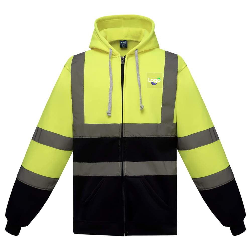 Questa felpa con cerniera e cappuccio ad alta visibilità offre un'ottima visibilità grazie alle sue due bande riflettenti da 5 cm intorno al corpo, alle braccia e alle spalle. È dotata di un cappuccio fisso con cordone regolabile, di una cerniera frontale per tutta la lunghezza e di polsini e vita in costola. Le cuciture doppie garantiscono una maggiore durabilità. Questo abbigliamento è disponibile in Hi Vis Yellow e Hi Vis Orange, conforme alla norma EN ISO20471 Classe 3. La sua composizione in 100% poliestere anti-pilling assicura un comfort ottimale e una maggiore resistenza. Possibilità di personalizzazione con ricamo per aggiungere il proprio logo o visivo.