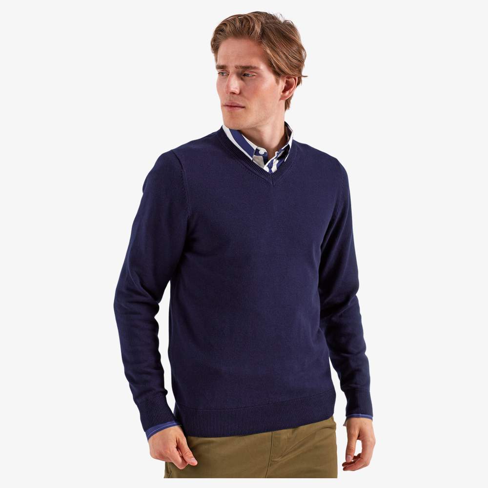 AQ042 - Pull V-kraag man in katoen mengsel aq042 - french_navy