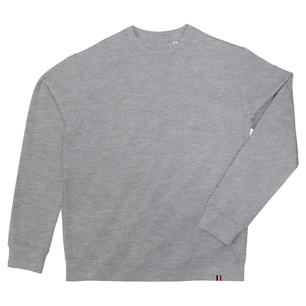 Uniseks sweat-shirt met ronde hals, gemaakt in Frankrijk. Zorgvuldige passvorm en naadwerk. Gemonteerde mouwen. Polsbanden en onderkant in ribbord 1x1 met contrastdetails. Halve maan aan de binnenkant van de hals. Binnenzijde van de hals schone band en driekleurig detail aan de onderkant van het lichaam.