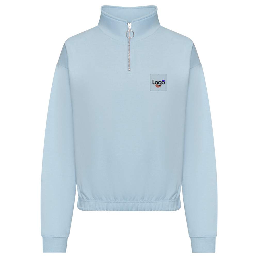 Blijf ontspannen met dit trendy korte sweatshirt, met een 1/4 zippersluiting aan de voorkant en een kruitkokerhalsband. Comfortabel model. Dragen met leggings of een joggingbroek voor een ontspannen dag. Rechte pasvorm voor dames. Elastisch afwerking. Inwendig geborstele molton. Gebreide polsen. Afneembaar label. Samenstelling: 80% ringspun katoen, 20% polyester. Dit sweatshirt is personaliseerbaar, ideaal om uw logo of een uniek visueel toe te voegen.