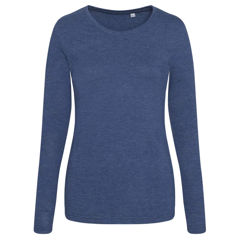 Dames lange mouw t-shirt gemaakt van een mengeling van drie materialen voor een stijlvolle en comfortabele uitstraling. Het heeft een ribbende ronde hals, zijnaad en gemonteerde mouwen voor een vlekkeloze pasvorm. Dubbele naad steken versterken de duurzaamheid van het kledingstuk. Dit t-shirt is bedoeld om gemakkelijk te worden gepersonaliseerd. Het profiteert van een WRAP-gecertificeerde productie.