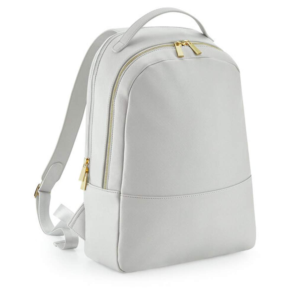 Rugzak gemaakt van fijnkorrelig polyurethaan met een zachte binnenvoering. Het is uitgerust met gouden metalen zippers, een handvat en aanpasbare schouderriemen van hetzelfde stof. Het heeft ook een slinger voor een rolbagage, een hoofdcompartiment met zip, een opgevulde laptopcompartiment voor laptops tot 14 inch, een interne organisatiezak en een fleshoudertje. Een discrète achterzak met zip is aanwezig op het paneel, evenals een binnenste zak met zip voor waardevolle voorwerpen. Het losneembare label vergemakkelijkt het rebranding. Zijn capaciteit is 10 liter en zijn afmetingen zijn 30 x 41 x 11 cm. Het bestaat uit 100% polyurethaan.