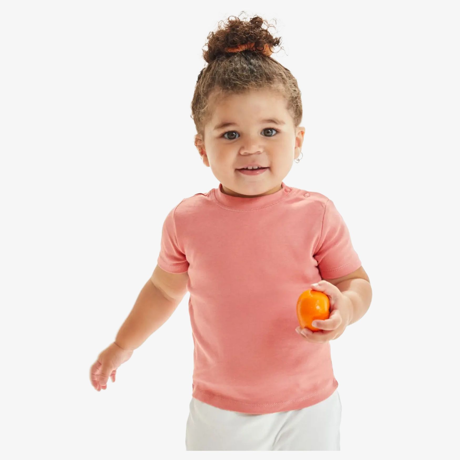 Deze baby t-shirt is gemaakt van interlock katoen voor optimaal comfort. Hij heeft een elastaan hak met knoopsluiting en decoratieve naden aan de hals, aan de armbanden en aan de basis. De drukknopen aan de schouder maken het aankleden gemakkelijk. Dit t-shirt is gemaakt met speciale aandacht voor details om een aangenaam te dragen kledingstuk voor baby's te garanderen.