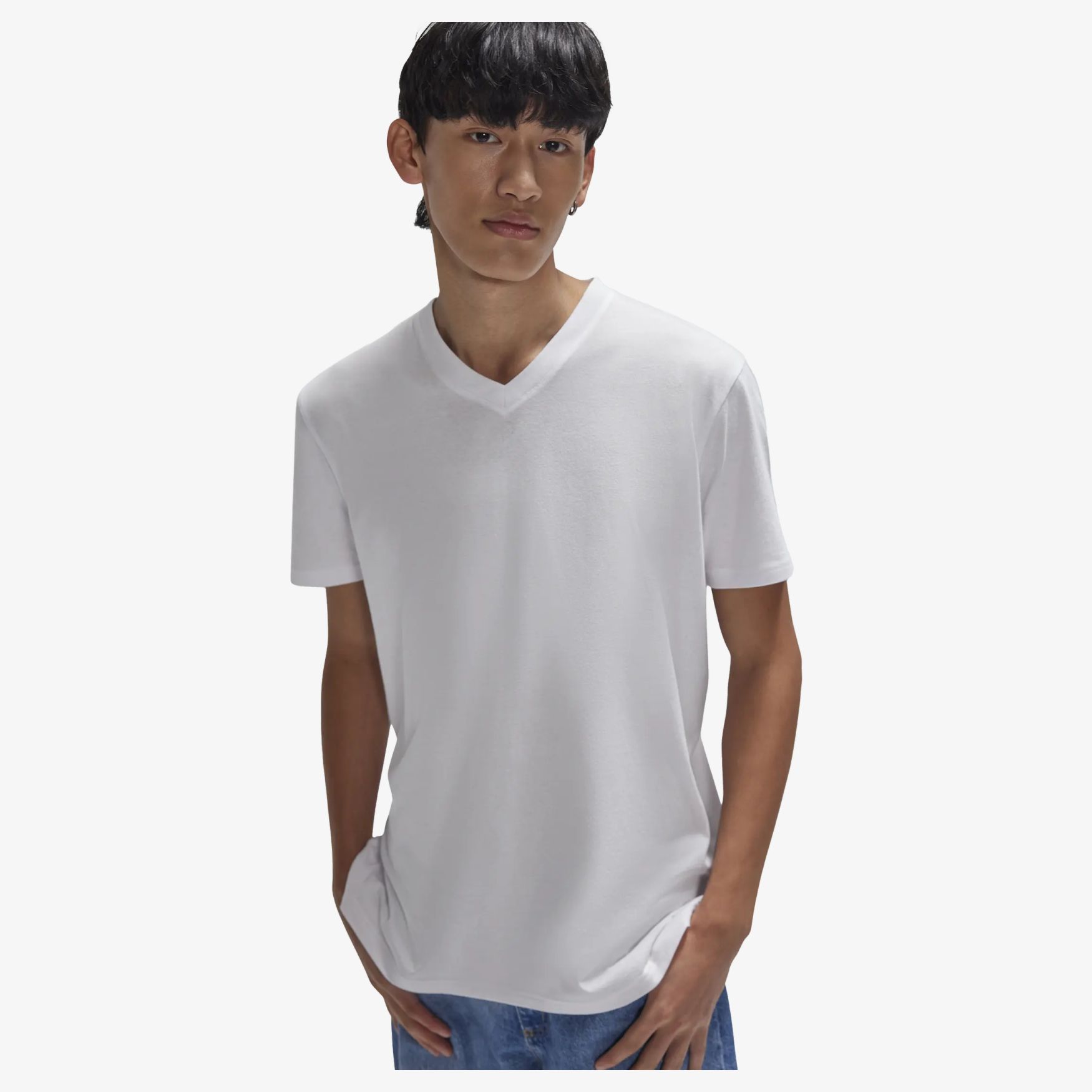 De E150 v t Shirt is een tee-shirt met V-hals in single jersey, met een moderne klassieke pasvorm, zijnaden, verstevigde halsboord en een labelvrije afwerking. Samenstelling: 100% voorgekrompen ringgesponnen katoen.
