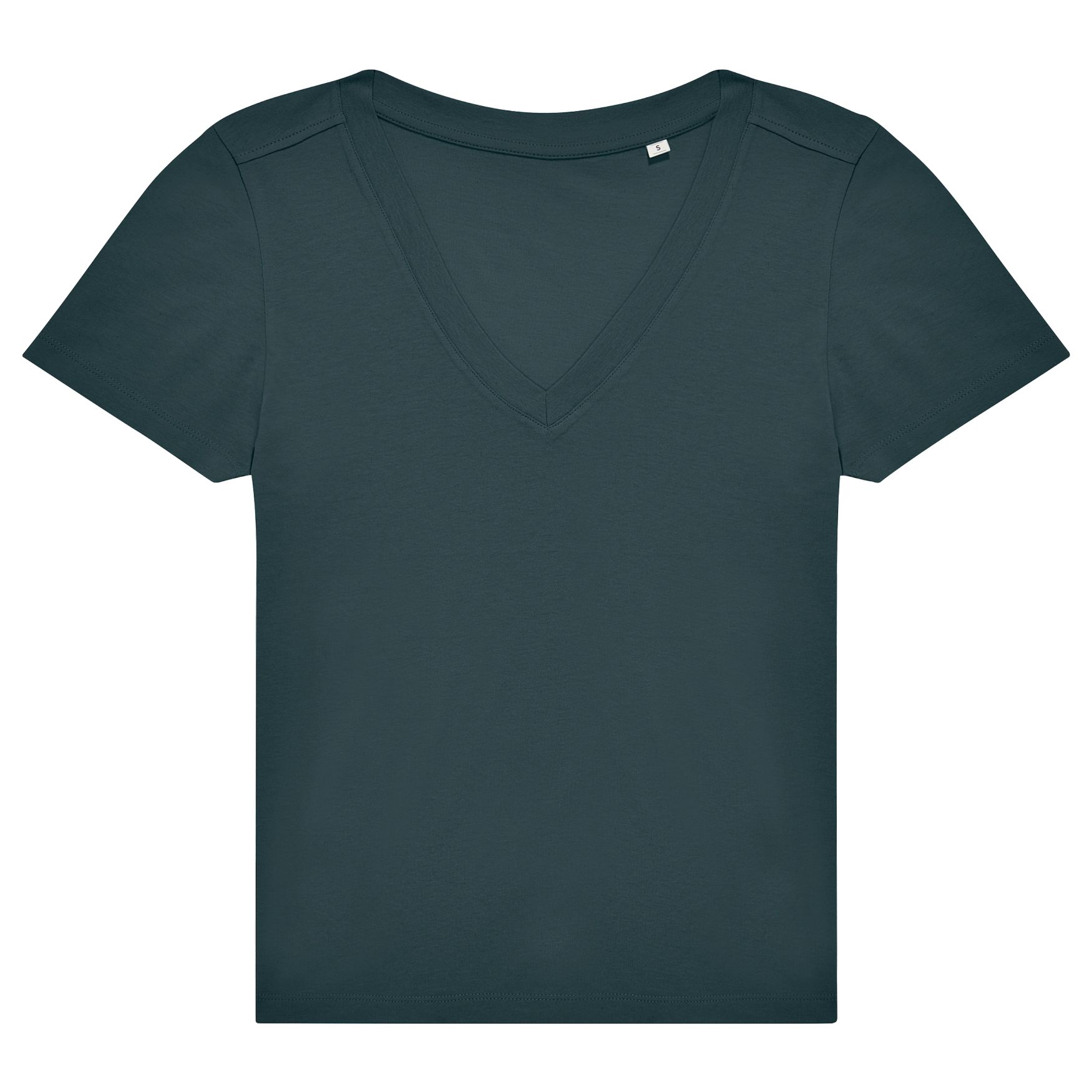 De Women's #E150 V T-Shirt is een dames-tee-shirt met V-hals in single jersey, met een moderne klassieke pasvorm en zijnaden. Vrouwelijke V-hals, nekband achteraan en naar voren verplaatste schoudernaden. Zonder etiket. Samenstelling: 100% voorgekrompen ringgesponnen katoen. Personalisatie mogelijk.