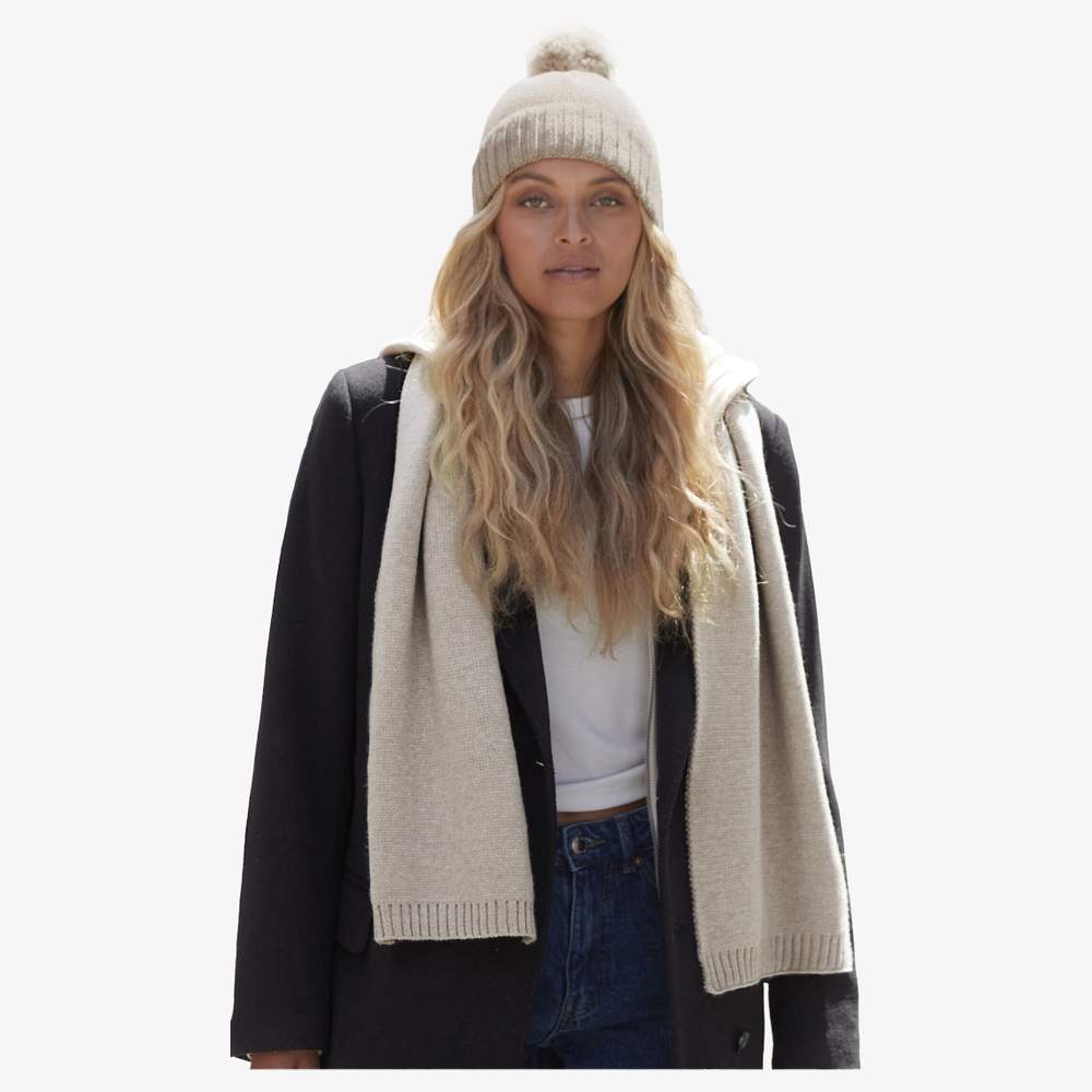 B401 - Sjaal muts wol b401 - oatmeal_fleck