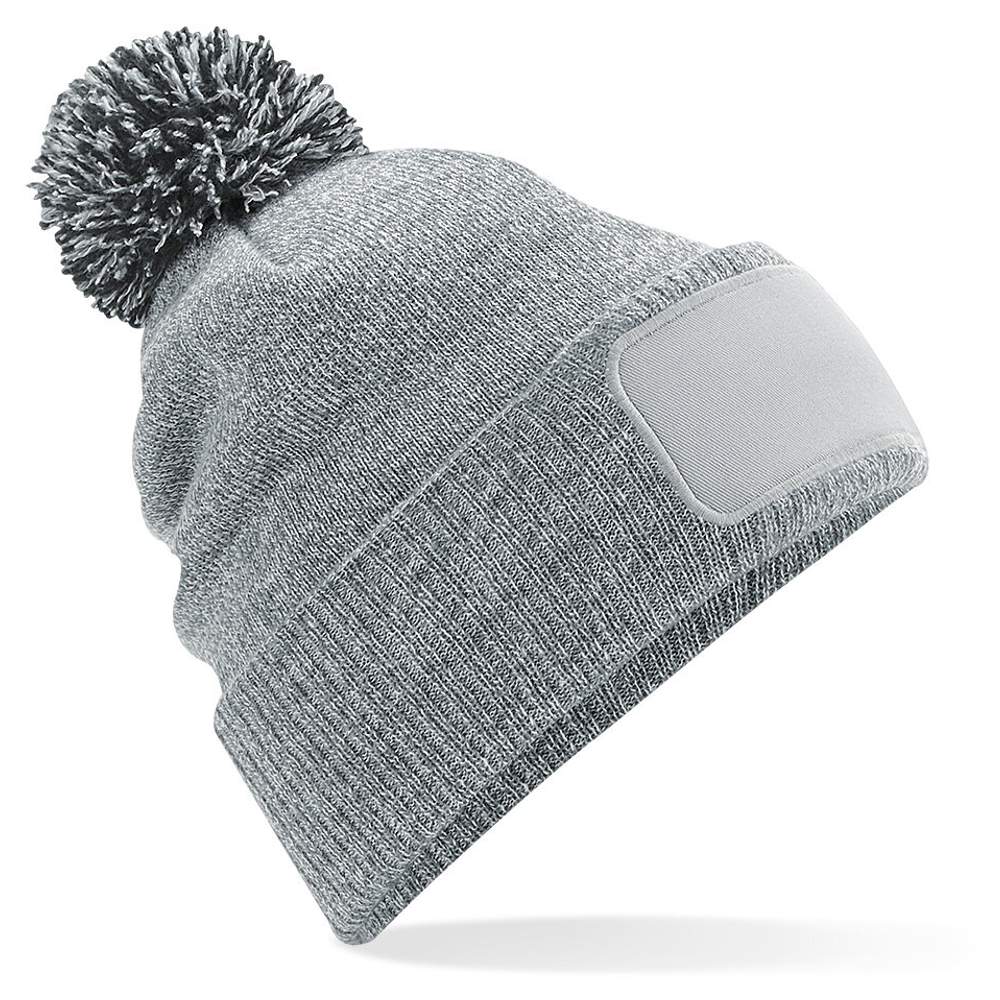 Muts met patch en pompon tweekleurig. Dubbele laag trui met geknepen achterkant. Patch van gergef cotton met printbaar gebied 10x 5cm. Verwijderbare etiket. Samenstelling: 100% acryl (Heather Grey: 55% polyester, 45% acryl)
