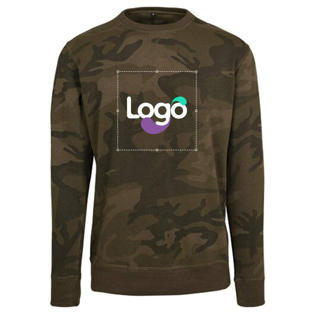 Camo crewneck Tee shirt katoen polyester by110 persoonlijk te maken