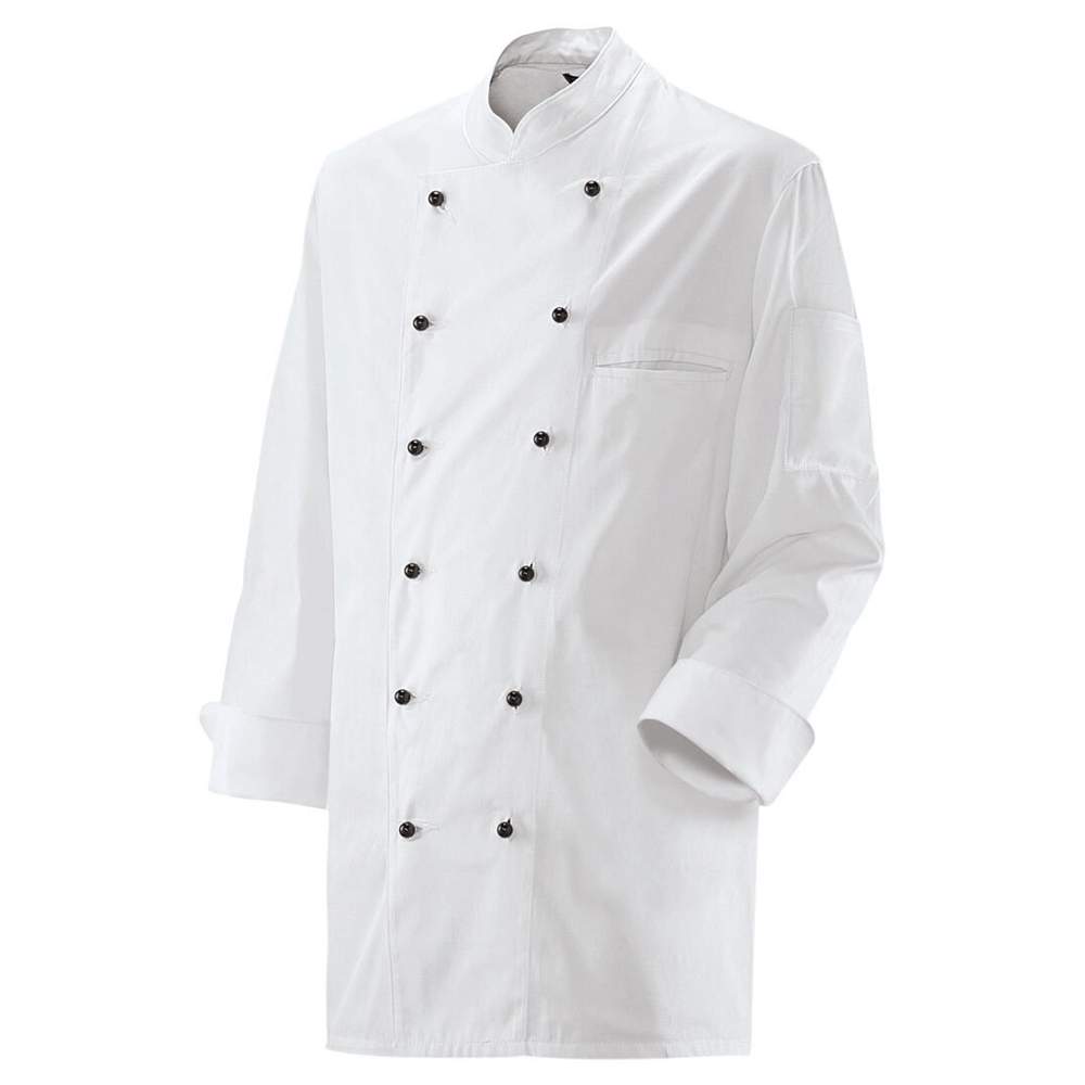 Deze kokspak is ontworpen om te voldoen aan de eisen van professionals in de horeca. Het biedt optimaal comfort dankzij de samenstelling van polyester en katoen. De gedubbelde mouwranden en de binnenborstzak met passepoil voegen een functionaliteit toe. Makkelijk te strijken, deze pak zorgt voor een net uiterlijk onder alle omstandigheden. De zwarte knopen met bolle koppen completeren de set.