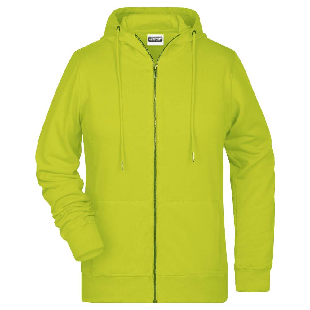 Sweat met kap voor vrouwen, licht gecinteerd, vervaardigd van kwaliteit vulling. Het heeft een kap met een trekkoord, zijnaad vooraan, een kangoeroezak en manchetten met elastiek. Het etiket is afneembaar.