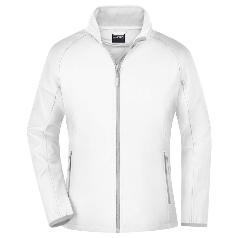Vrouwelijke jas met strakke pasvorm, gemaakt van aangename en soepele tweelaags softshell materiaal. Het biedt waterafstotende, winddichte en ademende eigenschappen, dankzij zijn specifieke structuur. De binnenkant is geflanseerd met zacht micropolaire voor extra comfort. Het beschikt over een continu gelijnde ritssluiting aan de voorzijde, aangevuld met een kinbeschermer om irritaties te voorkomen. Het is uitgerust met twee zijzakkjes met ritsen om persoonlijke spullen op te bergen en twee binnenzakken voor extra toegankelijkheid. De aanwezigheid van een elastische rand aan de mouw zorgt voor een optimale pasvorm en extra bescherming.