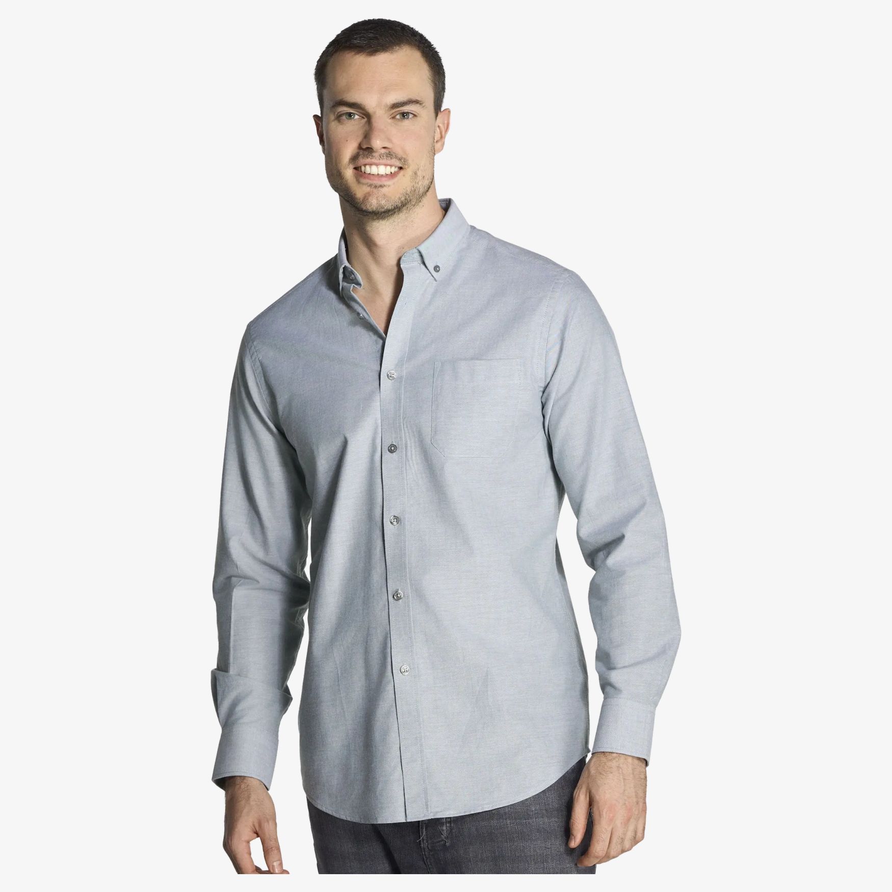 Oxford hemd voor mannen met lange mouwen, gemaakt van katoen en polyester. Het heeft een klassieke knoopkol en een discrete borstzak. De knoppen zijn afgestemd op de kleur van het weefsel. Dit hemd biedt optimale comfort voor dagelijks gebruik.