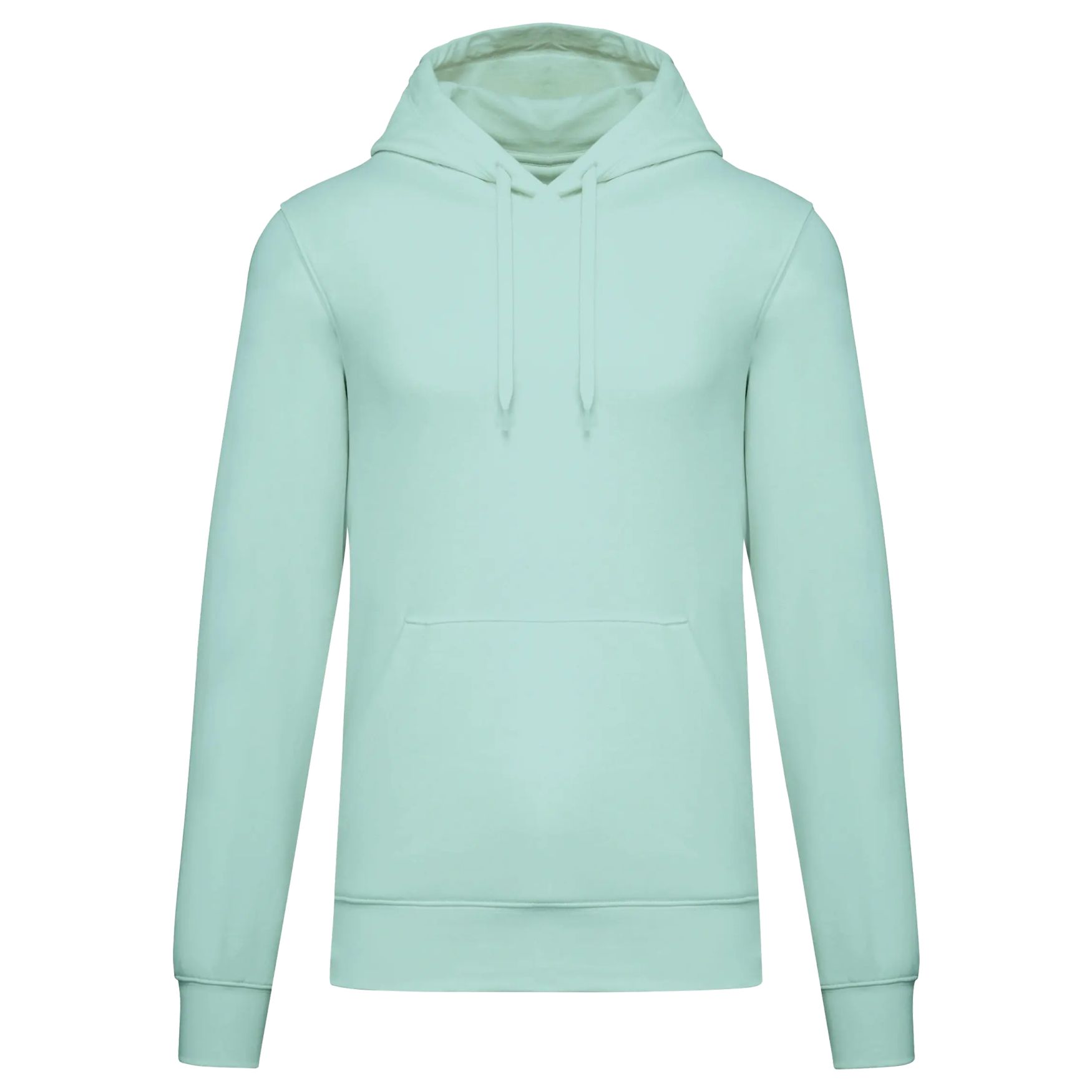 Kapmes voor mannen, ontworpen in een eco-vriendelijke aanpak. Het is gemaakt van gekrabde vilt 3-dradige LSF (Low Shrinkage Fleece) en kamgaren katoen, biedend een optimale comfort. De rechte pasvorm zorgt voor een klassieke en comfortabele silhouet. Het is voorzien van 1x1 ribbanden in buisvormige montage voor een verfijnde afwerking aan de mouwen en de onderkant van het kledingstuk. Een praktische kangaroepocket en een dubbele capuche voltooien dit model. Een hygiëneband in jersey in dezelfde kleur en een halve maan-afwerking aan de binnenkant van de kraag versterken het comfort en de duurzaamheid. De afwerkingen met dubbele naad aan de onderkant van de mouwen, de onderkant van het kledingstuk en de kraag garanderen een hogere kwaliteit van fabricage. Het ontbreken van een merketiket aan de kraag vergemakkelijkt de personalisatie. De samenstelling omvat 85% katoen en 15% polyester. Het is ontworpen uit 85% biologisch katoen en 15% gerecycled polyester. Het certificaat (Global Organic Textile Standard) wordt uitgegeven door Ecocert Greenlife.