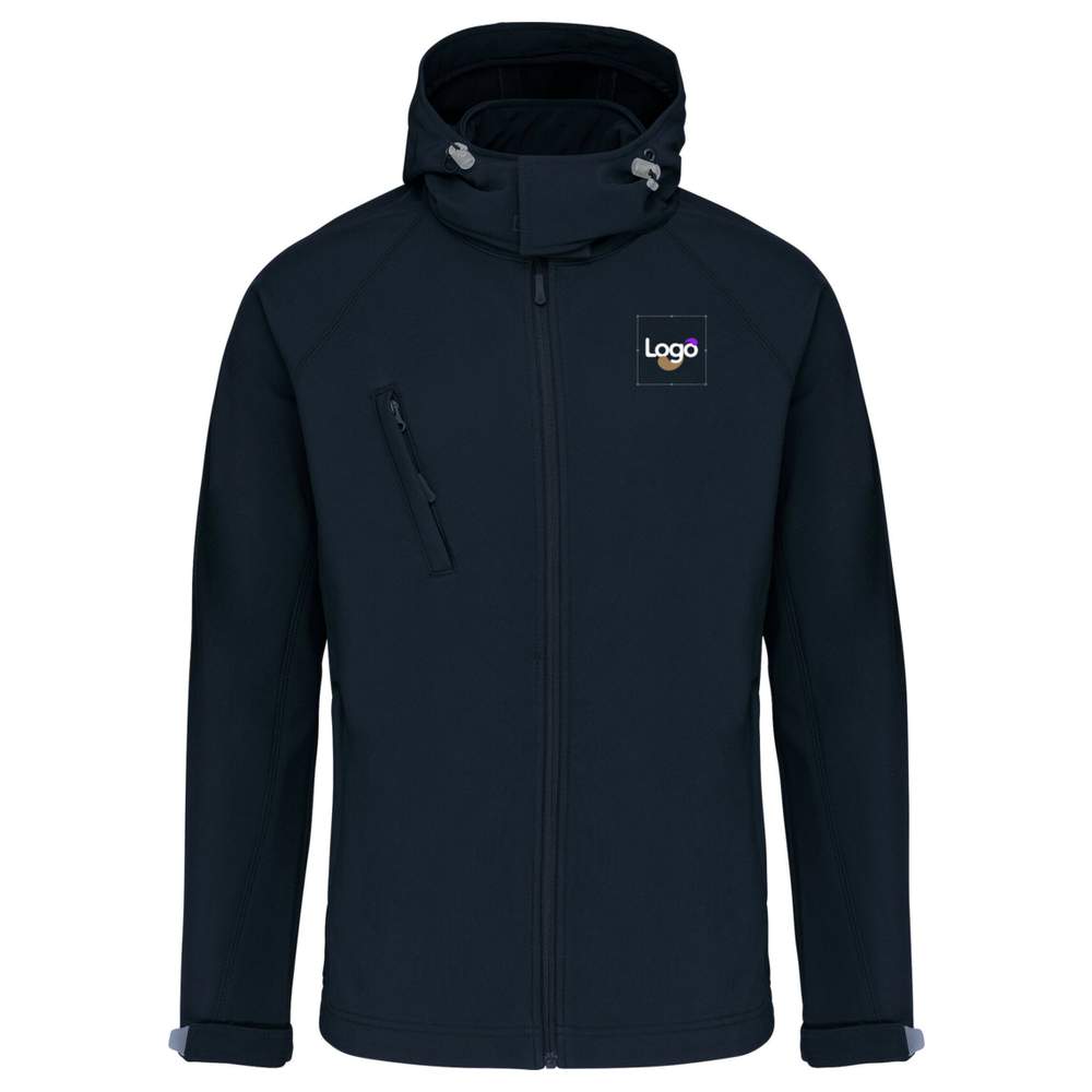 K413 - Heren softshell jas met kap aanpassen met uw visueel k413 - navy