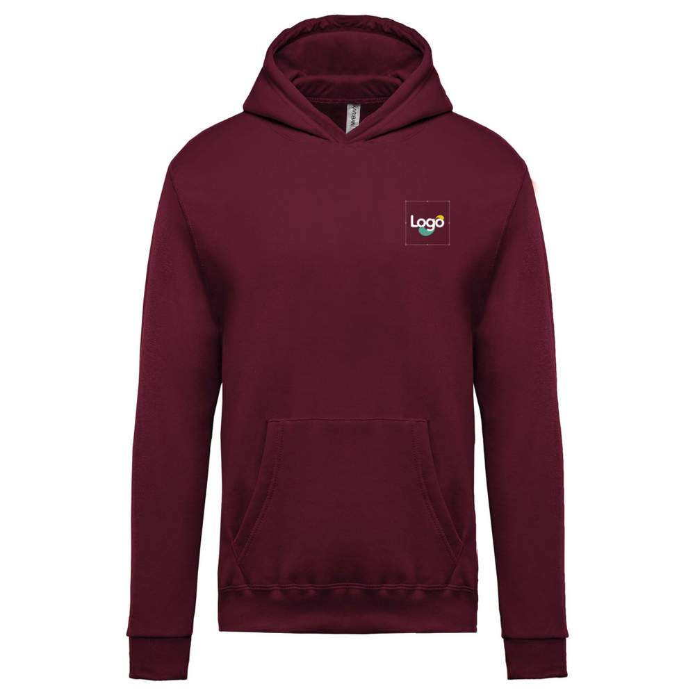 Kapje kinder van 80% katoen / 20% polyester. Gekamde vulling voor optimaal comfort. Gemonteerde mouwen en buisvormige pasvorm voor een klassiek uiterlijk. Gedubbelde kap en praktische kangoeroezakken. Afwerking met een randen aan de onderkant van de mouwen en aan de onderkant van het kledingstuk voor een betere houdbaarheid. Dit kapje is ideaal voor actieve kinderen en kan worden aangepast door borduurwerk met uw logo of visuele element.