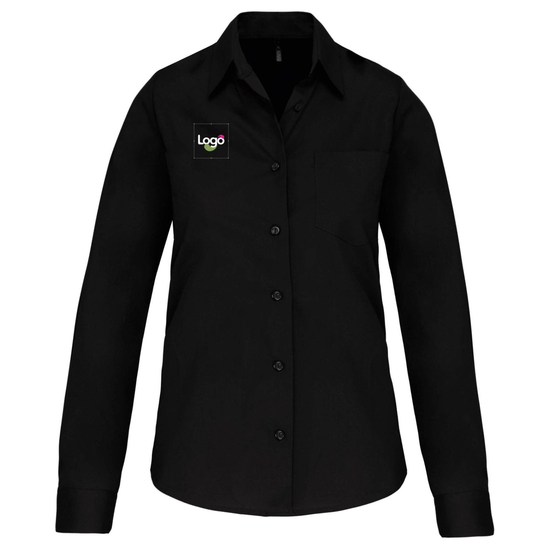Popeline langarmhemd voor vrouw k542 personalisatie - Black