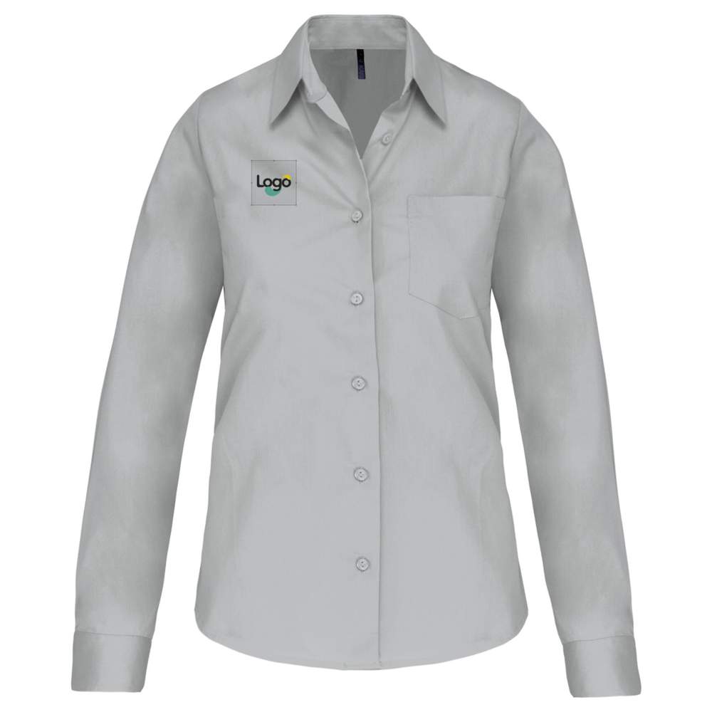 Popeline langarmhemd voor vrouw k542 personalisatie - Snow grey