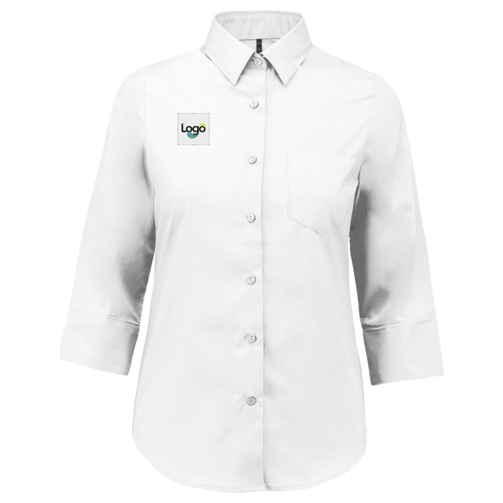 Deze korte mouwen shirt voor vrouwen is gemaakt van 65% polyester en 35% katoen poppelinet, wat gemak bij het onderhoud biedt. Hij heeft een knopenloze kraag, knopen in dezelfde kleur en een borstzak aan de linkerkant met een V-vorm en één herinneringsknop. De afgeronde onderkant brengt moderniteit. Dit shirt is ook ideaal voor het aanbrengen van een logo door borduren, waardoor u uw logo, kleuren of andere grafische elementen kunt toevoegen voor een consistente en professionele merkbeeld.