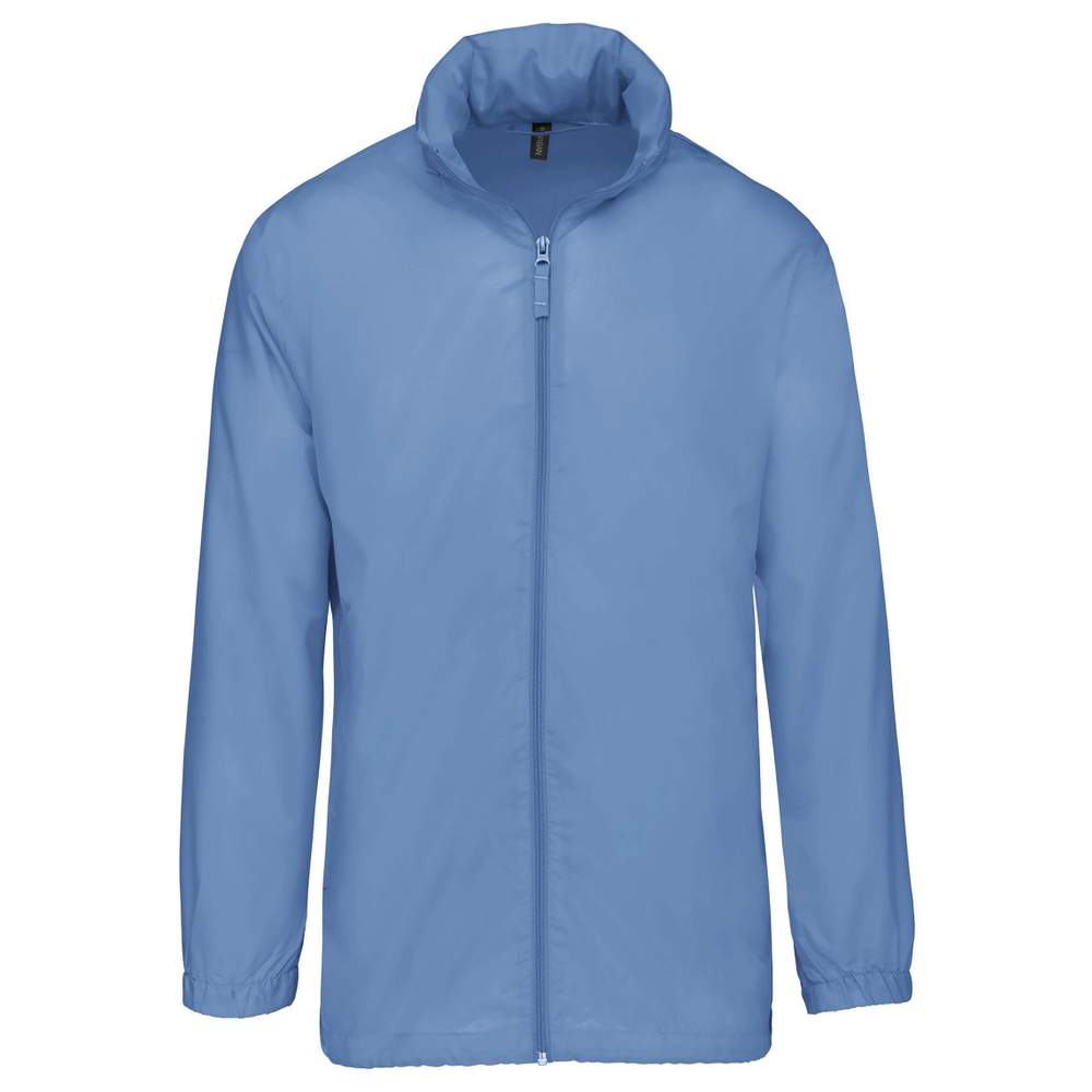Deze KARIBAN windbreker is gemaakt van 100% polyester, biedt bescherming tegen de wind. Het heeft een ingebouwde kap in de kraag, vastgezet met een zelfklevende strip, en twee handige zipzakken voor je persoonlijke spullen. Een treksnoer aan de onderkant van het kledingstuk helpt bij het aanpassen van de pasvorm, terwijl elastische onderarmopeningen zorgen voor optimaal comfort. De windbreker kan ook worden opgevouwen in zijn eigen zak, wat hem makkelijk te vervoeren en opbergen maakt.